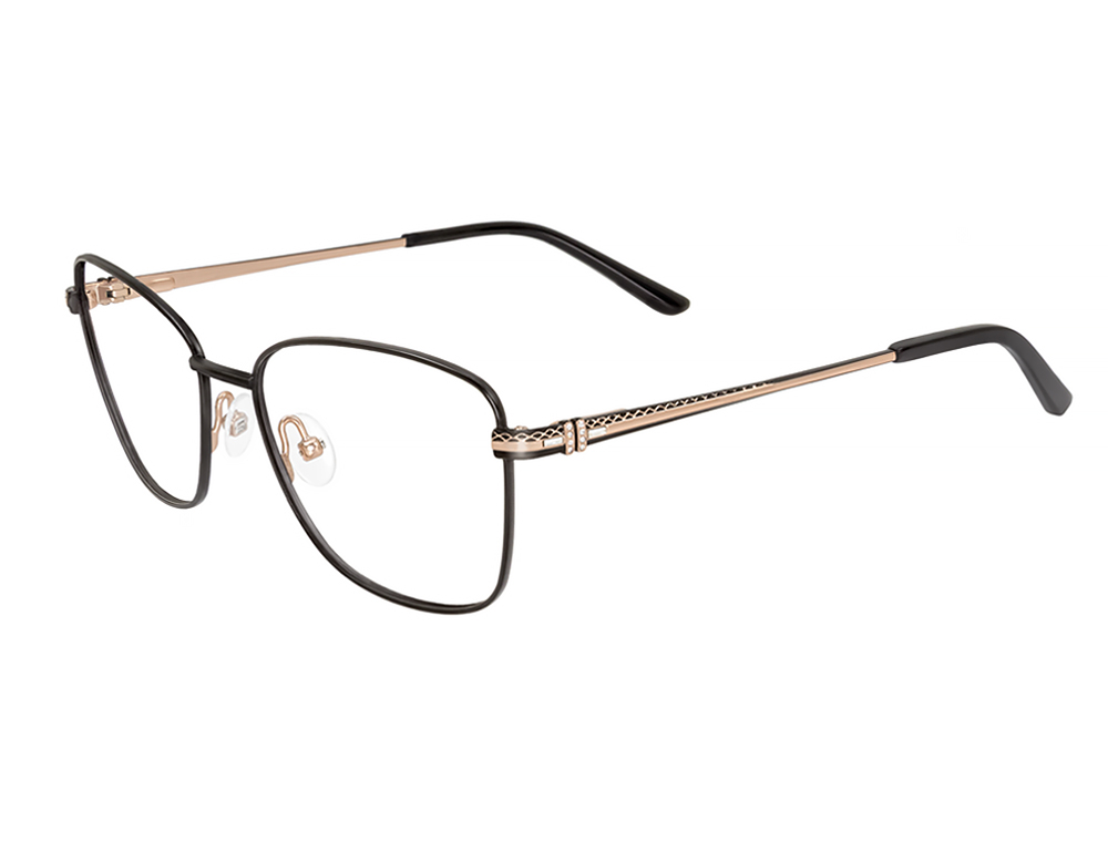 Colors: C-1 Emerald/Gold, C-2 Eggplant/Gunmetal, C-3 Black/Rose Gold Eye: 53 Bridge: 16MM Temple: 135 A: 53.02 B: 41 ED: 58.51 Special Features: Ladies, Metal, Spring Hinges